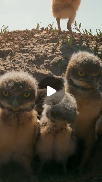 Today’s gif critters are burrowing owls—baby burrowing owls specifically. They haven’t grown their adult feathers yet, so we can assume that are only a few weeks old. This group seems to be comprised of several nests: burrowing owls may live in communities with just a few nesting pairs to up to several hundred families in close proximity. A typical brood is seven eggs, although sometimes can be as large as 12. Mom owls will incubate her eggs for about 30 days while dad owls provide food. After their clutch hatches, mom and dad share hunting and feeding duties, with mom venturing out more frequently as the children gain independence.