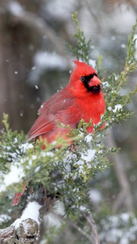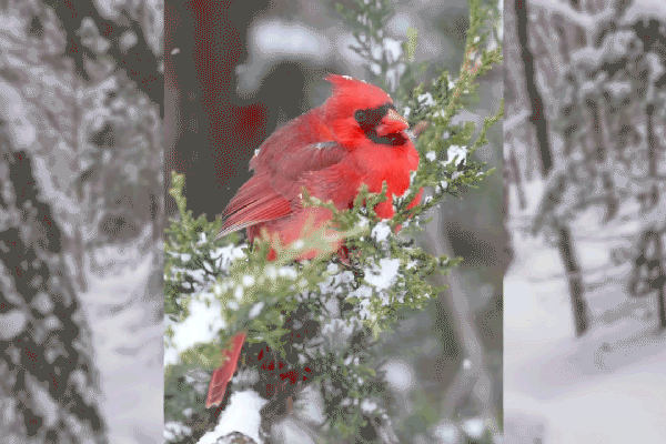 First winter I lived in Chicago, there was a cardinal would perch in the tree right outside my living room window, not three feet away.