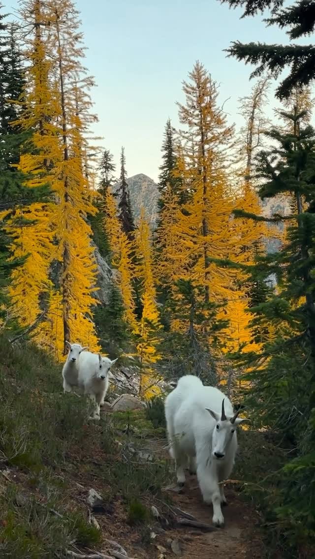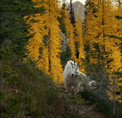 OK, I admit, I’m forcing the joke a little there in the title. But in any event, this was an absolutely wonderful capture by photographer Cody Mayer that I had to turn into a gif. A mother mountain goat shepherds her two little ones up a path through a forest of golden autumnal trees. The young’uns are a little unsure of the photographer in their way, so they opt for the high detour. Worry not, though, they’ll navigate that incline easily; it’s like level 2 out of 10 on the difficulty scale for such agile creatures.
