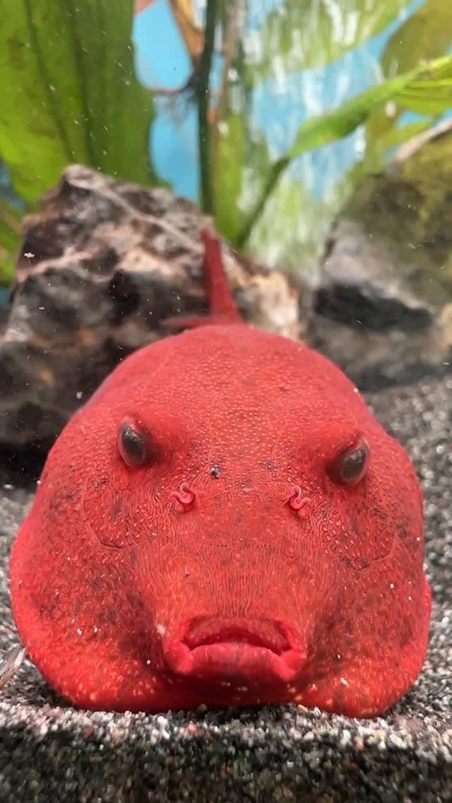 Check out the puss on this guy! This pufferfish (a Red Congo Puffer, I believe), just does not seem to be thrilled about facing the day. Relatable! I do think this particular species has resting grump face, which… also is relatable. I do like that the close-up photography allows us to appreciate the interesting flanges on his snout and his subtle swirled markings on his skin. He’s handsome for a grumpy guy! I would never be rude enough to ask him to smile more.