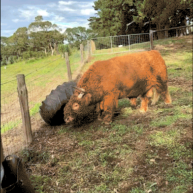 But one thing I am into is the training regimen of this steer. Woah! He is a mad unit, fully beef’ed (har!). If I was running one of those NFL teams, I’d hire him immediately. Just imagine the potential rushing and tackle strength. He’s already my choice for Defensive Lineman of the Year (is that a thing? It should be a thing).