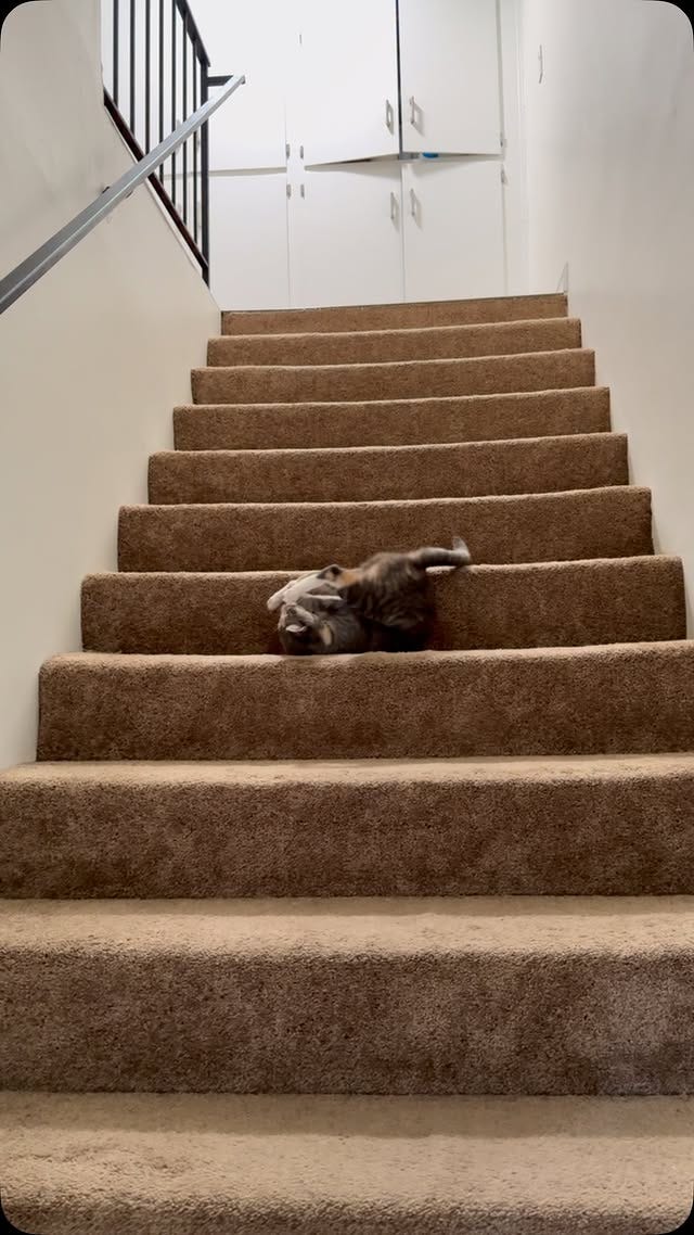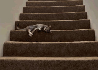 Well that was brilliant and funny. The cats I live with do not know stairs. Well they have to step down once to get into three different rooms in the house but that's it. I have no idea what they would do if confronted with multiple stairs but it would be interesting to find out. Totally not worth moving into a house with stairs though just to find out. Thanks, Martini for the fun!